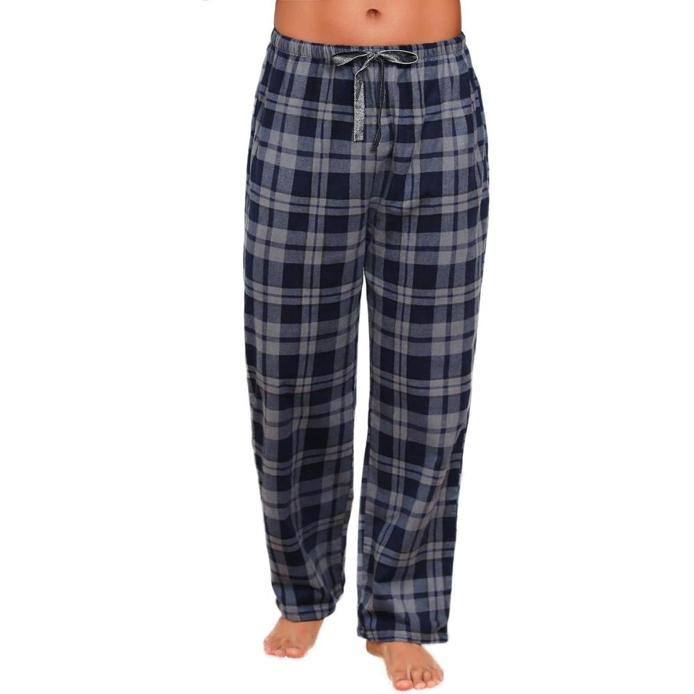 ENJOYNIGHT Mens Flannel Pajama Pants 100% Cotton Lounge Bottoms Plaid Pjs(Light Blue)