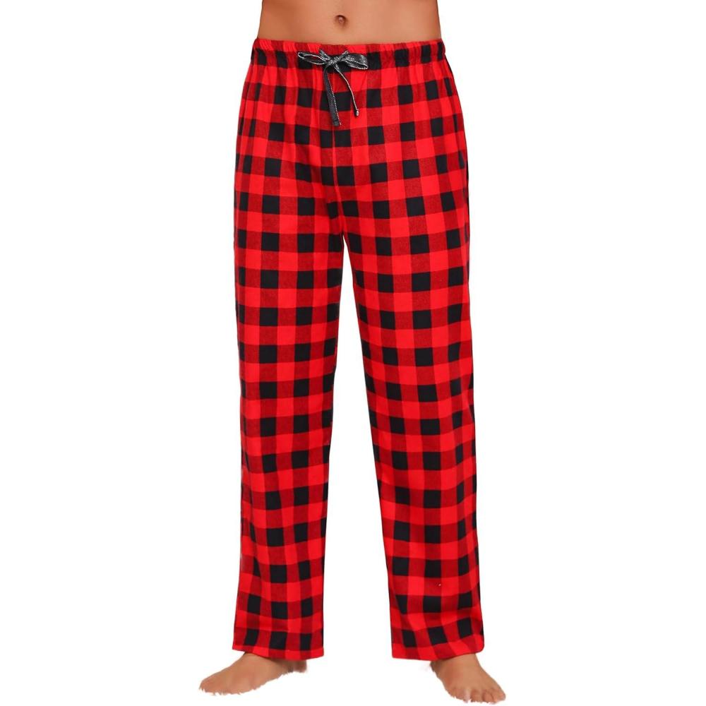 ENJOYNIGHT Mens Flannel Pajama Pants 100% Cotton Lounge Bottoms Plaid Pjs(Red Plaid)