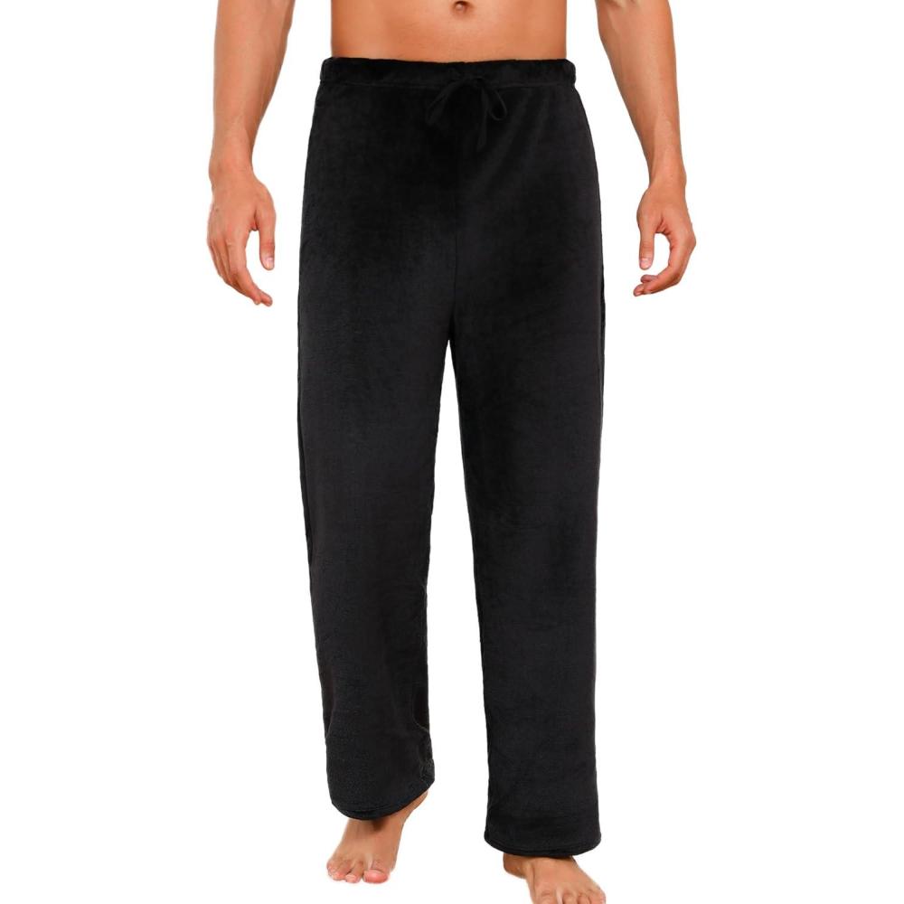 ENJOYNIGHT Mens Fleece Pajama Pant Fluffy Sleep Bottoms Plush Lounge Pjs(Black)