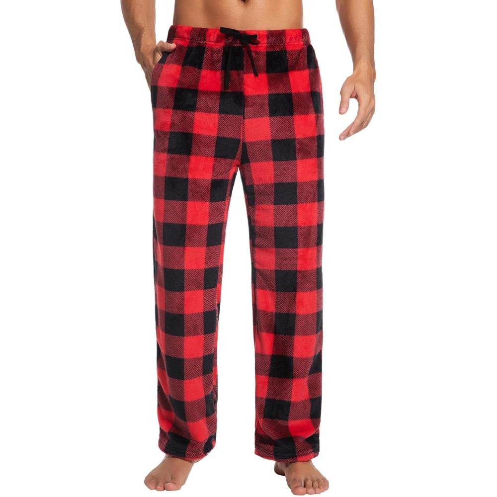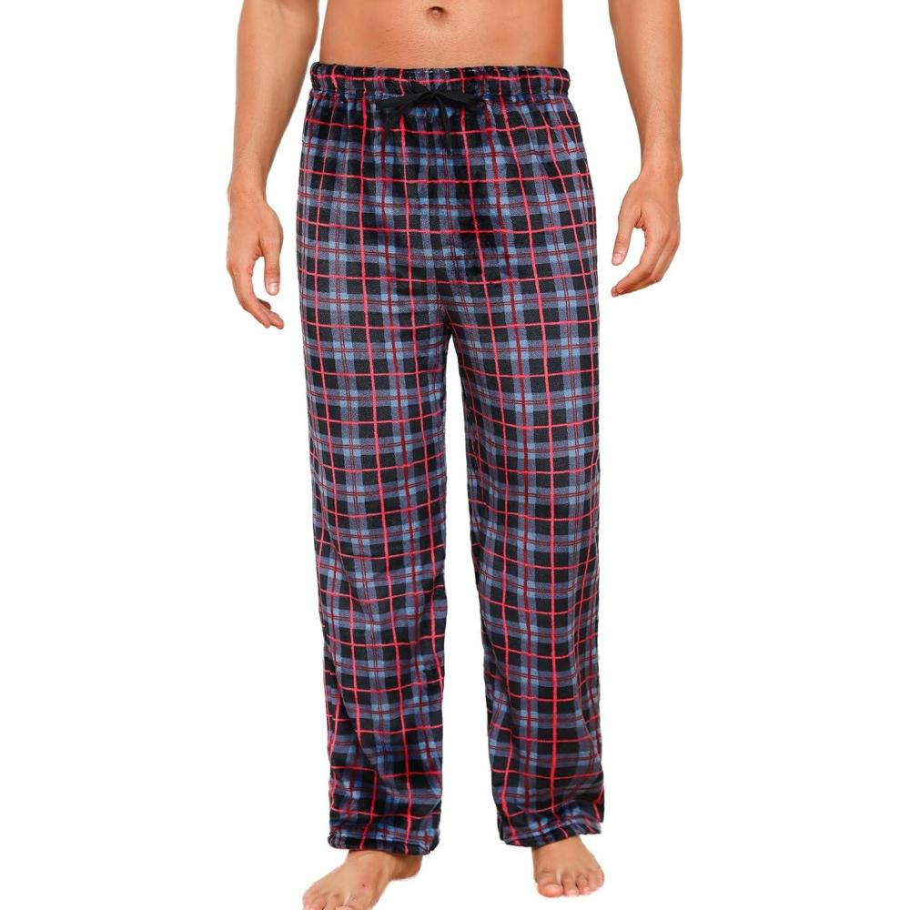 ENJOYNIGHT Mens Fleece Pajama Pant Fluffy Sleep Bottoms Plush Lounge Pjs(Red Lattice)
