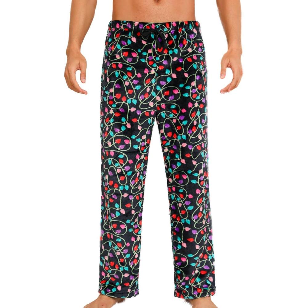 ENJOYNIGHT Mens Fleece Pajama Pant Fluffy Sleep Bottoms Plush Lounge Pjs(Black Light)