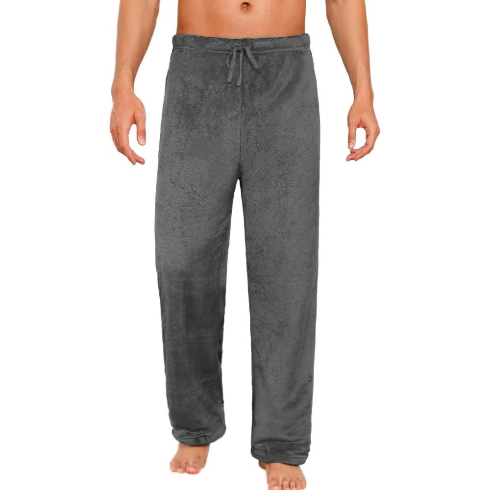 ENJOYNIGHT Mens Fleece Pajama Pant Fluffy Sleep Bottoms Plush Lounge Pjs(Dark Grey)