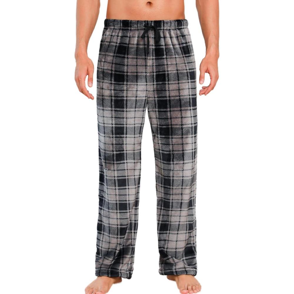 ENJOYNIGHT Mens Fleece Pajama Pant Fluffy Sleep Bottoms Plush Lounge Pjs(Grey Lattice)