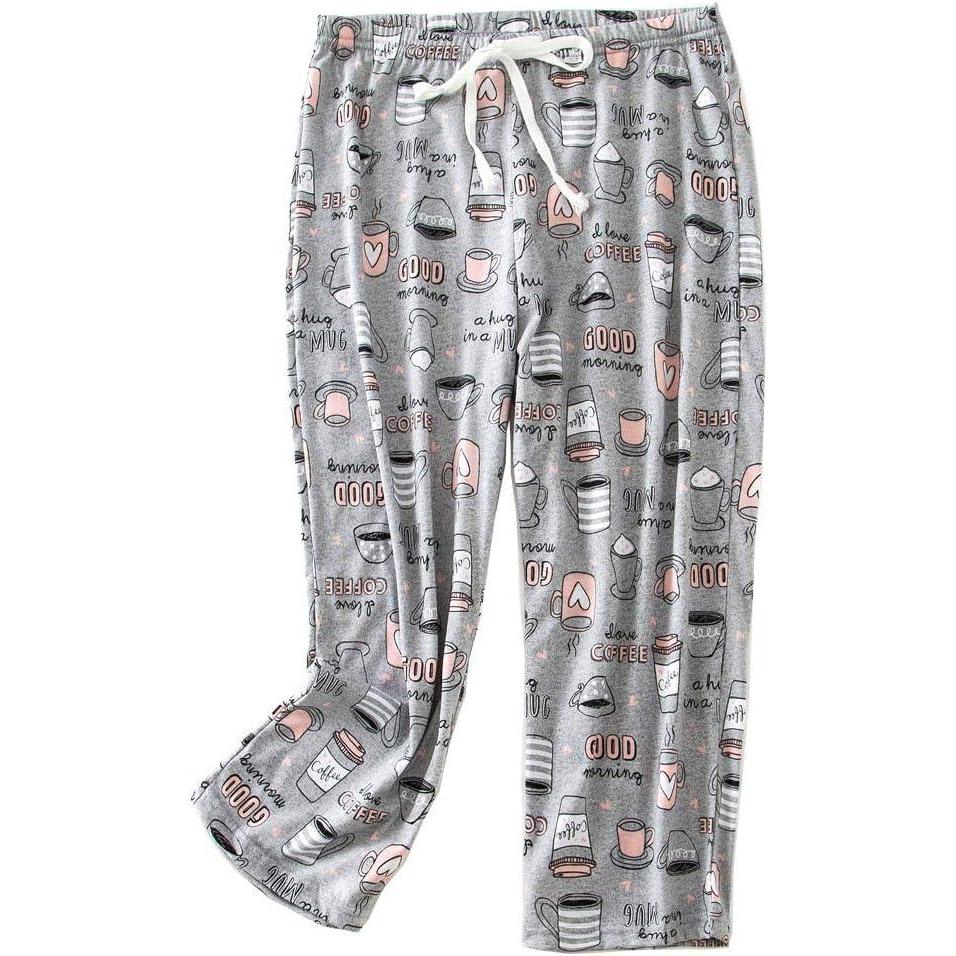 ENJOYNIGHT Women’s Capri Pajama Pants Lounge Causal Bottoms Print Sleep Pants(A-coffee Cup)
