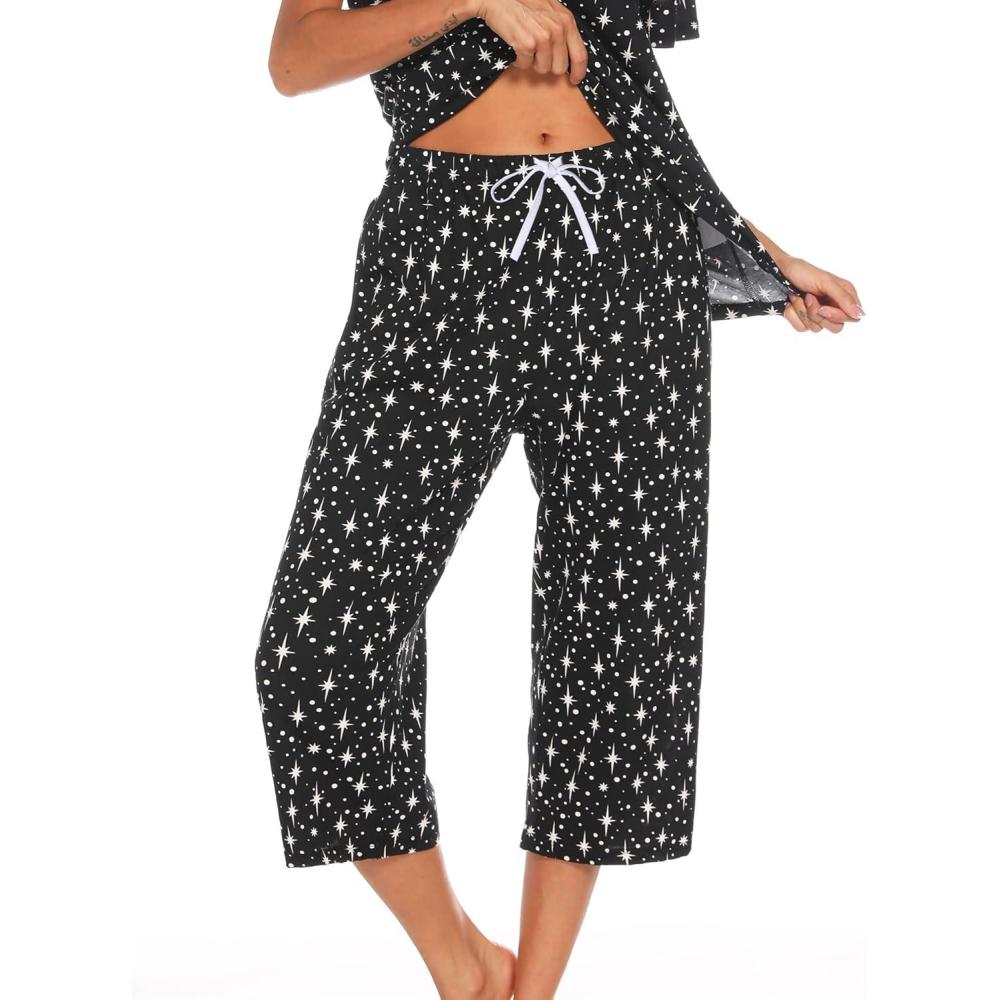 ENJOYNIGHT Women’s Capri Pajama Pants Lounge Causal Bottoms Print Sleep Pants(B Star)