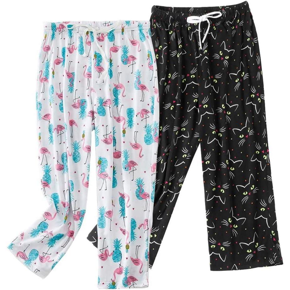 ENJOYNIGHT Women’s Capri Pajama Pants Lounge Causal Bottoms Print Sleep Pants(B-cat flamingo)