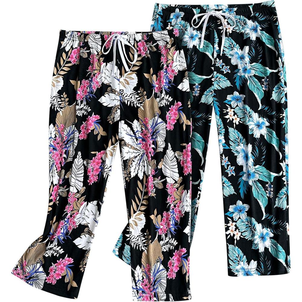 ENJOYNIGHT Women’s Capri Pajama Pants Lounge Causal Bottoms Print Sleep Pants(Blue Floral pink Floral)