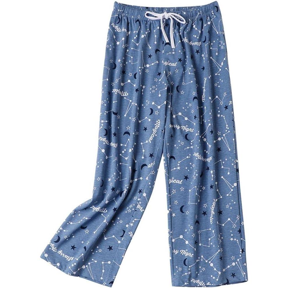 ENJOYNIGHT Women’s Capri Pajama Pants Lounge Causal Bottoms Print Sleep Pants(Blue Star)