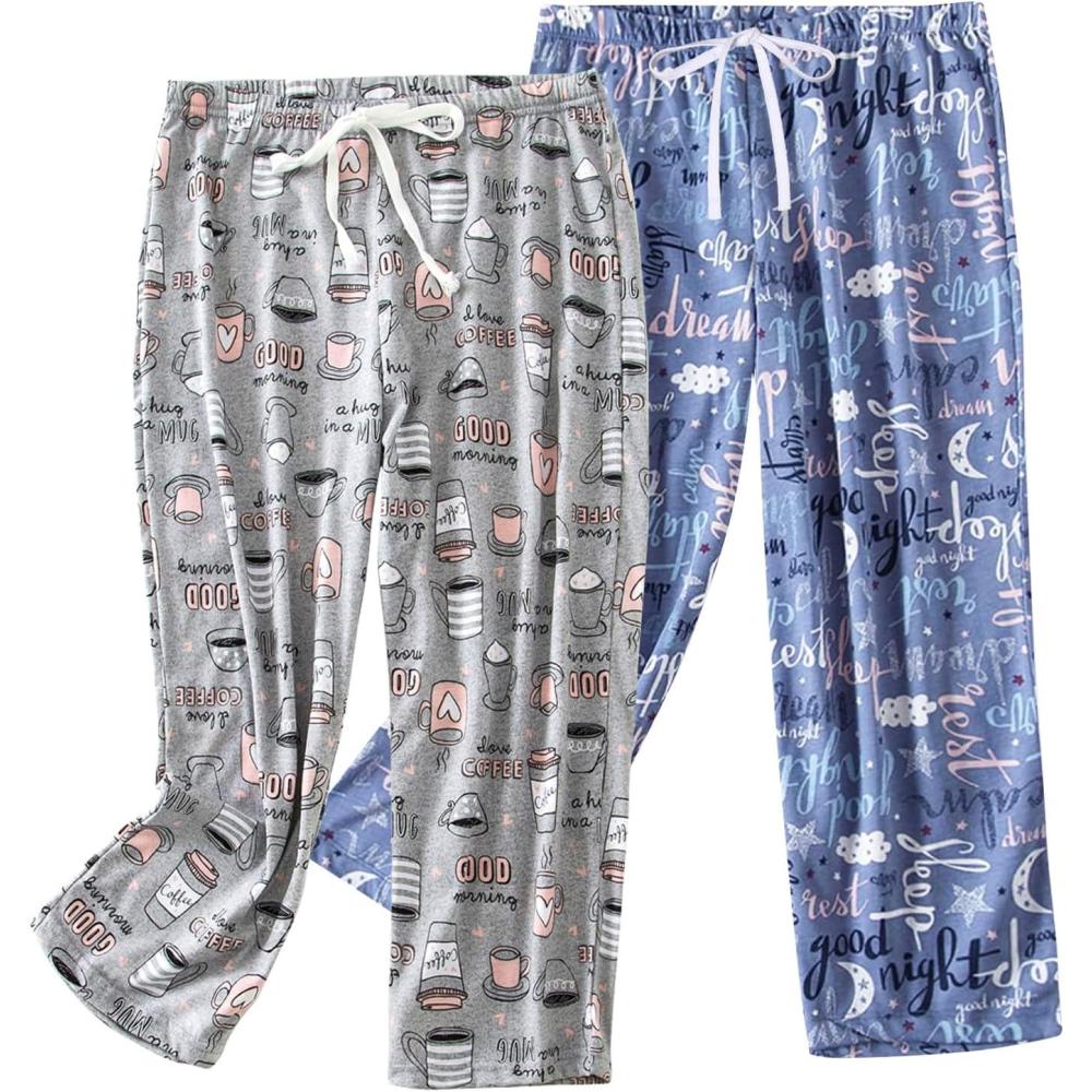 ENJOYNIGHT Women’s Capri Pajama Pants Lounge Causal Bottoms Print Sleep Pants(Blue coffee)