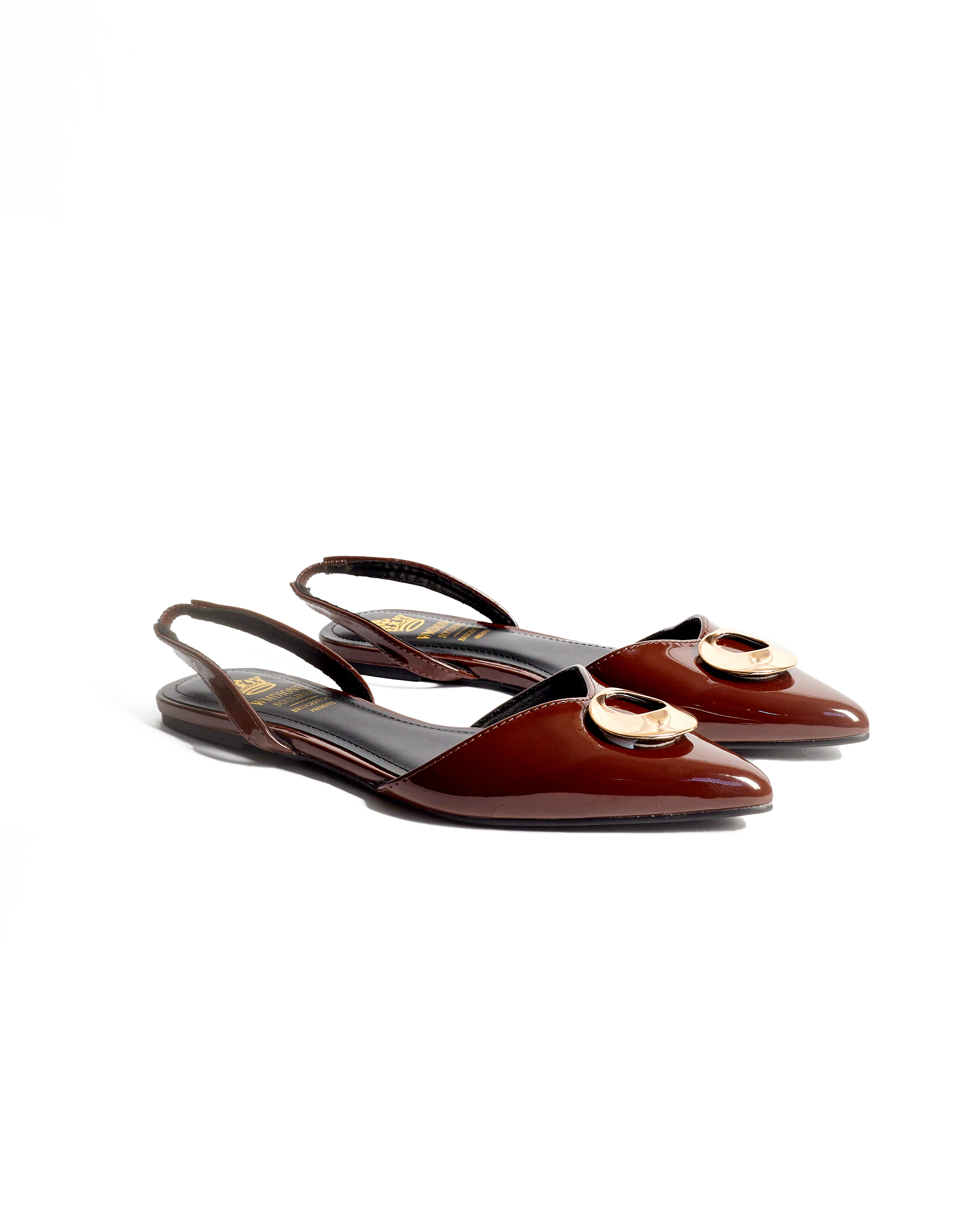 (2 FOR 50K) CHOCO ROUND GOLD BUCKLE SLING BACK FLATS