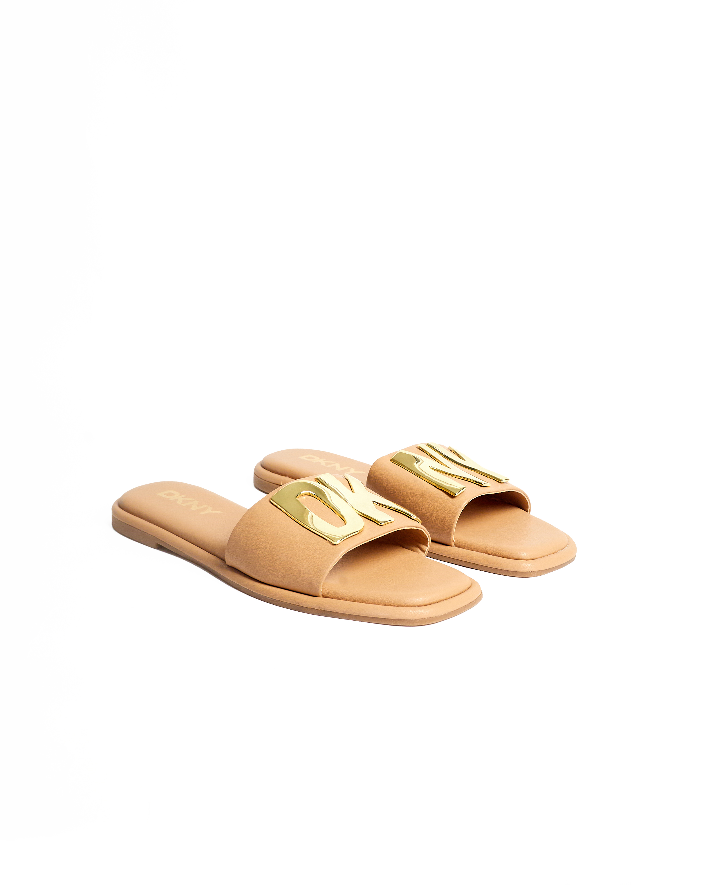 (2 FOR 70K)DKNY NUDE SQUARE TOE SWITCH LOGO SLIPPERS