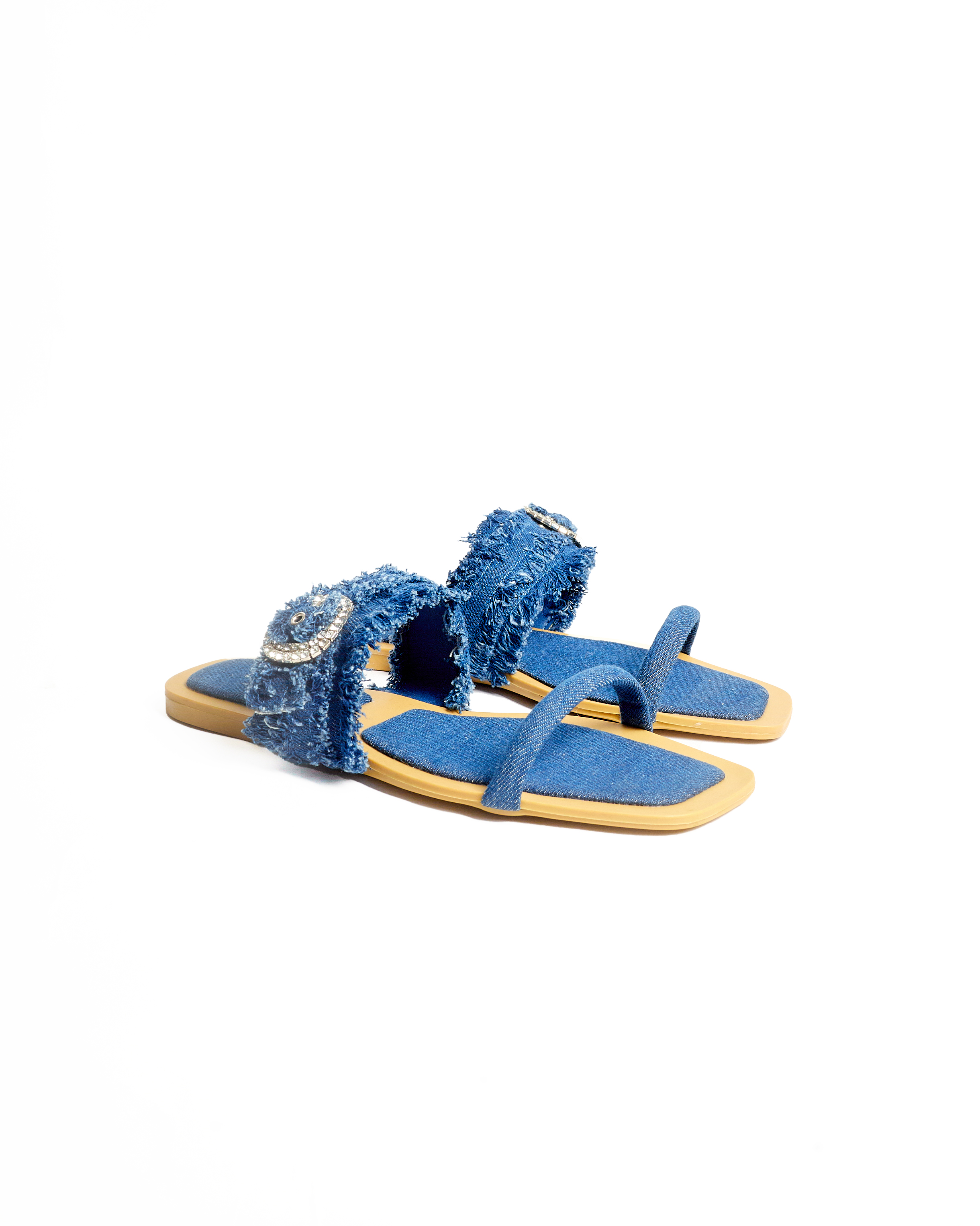 (2 FOR 50K) POG E2659-8 BLUE DENIM FRINGE EMBELLISHED SLIPPERS